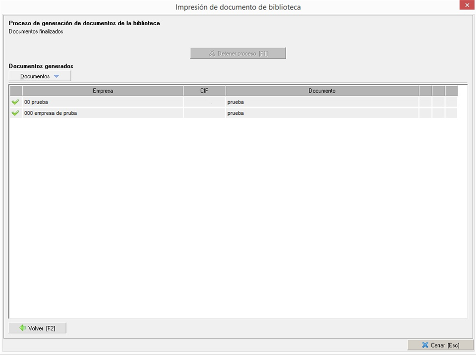 Una vez establecidos los documentos que queremos generar y a los elementos a los que se lo vamos a hacer (empresas, trabajadores o colaboradores) pulsaremos el botón