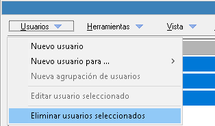 Seleccionados los elementos que correspondan del listado, debe usar el menú Usuarios > Eliminar usuarios seleccionados, y responder Sí a la pregunta de confirmación para realizar el proceso:
