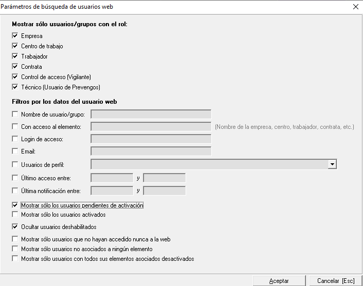 Por ello, se diferenciará entre usuarios web que tienen todos sus elementos asociados desactivados con aquellos que están asociados al menos a un elemento desactivado.