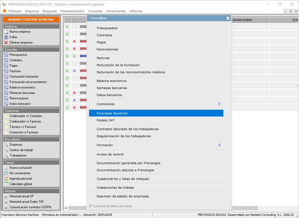 Dentro del módulo de Administración desde el menú superior Consultas > Empresas deudoras.