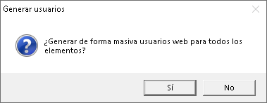 Una vez realizada la asignación del e-mail a todos los registros, proceda a usar el menú Generar usuarios > Generar usuarios web (todos) para que se generen los usuarios web.