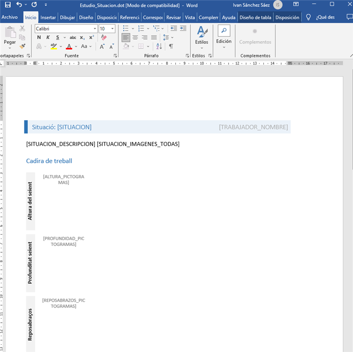 Esto le abrirá el documento word de la subplantilla donde traducir el texto deseado. Como se aprecia, en este ejemplo se ha traducido todo el texto plano, es decir, lo que no se inserta a través de un marcador, al catalán. Tras esto, se debe guardar el documento Word.
