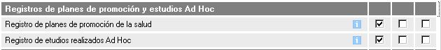 A continuación vemos una imagen con todos los permisos que forman parte de los registros de planes de promoción y estudios Ad Hoc: