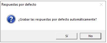 Una vez que el usuario selecciona el cuestionario o el multicuestionario a aplicar, aparecerá un mensaje en el que la aplicación pregunta si el usuario desea cumplimentar el cuestionario con las respuestas 'por defecto'.