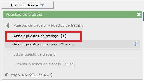 - Puestos de trabajo. En el desplegable 'Puestos de trabajo'>'Añadir puestos de trabajo. Otros...' encontrarán estas opciones: