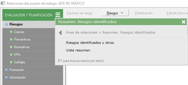 , seleccionando 'Resumen. Riesgos identificados'.