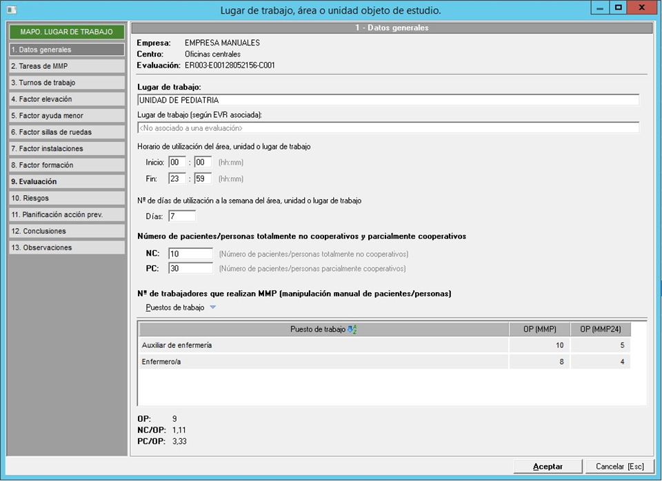 - Número de operadores que realizan tareas de manipulación manual de pacientes en el turno