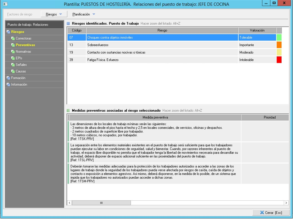 Una vez añadidos los riesgos, medidas, epis, etc. Con doble clic sobre el elemento podrán editar y personalizar la información en la plantilla que están editando. Es decir, podrá valorar los riesgos o planificar las medidas, epis, señales....