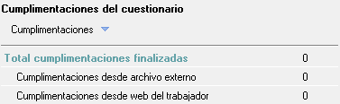 El usuario de Prevengos podrá comprobar si hay cumplimentaciones realizadas desde el portal web desde la ficha del estudio psicosocial, concretamente desde el apartado 'Cuestionario'. En la parte inferior izquierda de esta pantalla, tendrá un resumen de las mismas. Si ha combinado este modo de cumplimentación con el externo vía CuestionarioPS, observará el total de cumplimentaciones y cuántas de ellas han sido desde la web o desde el archivo externo.