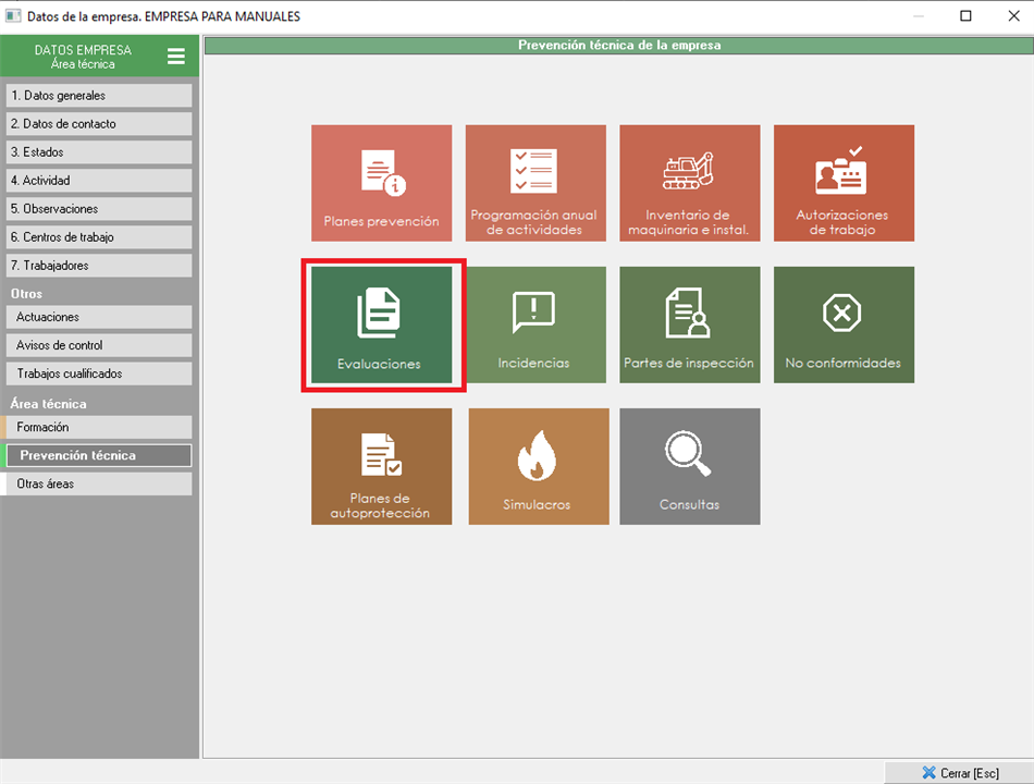 El estudio se realizará sobre uno de los centros de la empresa, por lo que también podría dirigirse a la ficha de datos del centro de trabajo correspondiente y situarse en el apartado de 'Evaluaciones de riesgos' de dicho centro de trabajo.