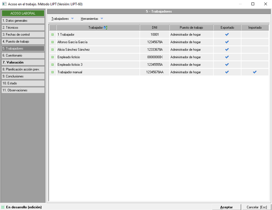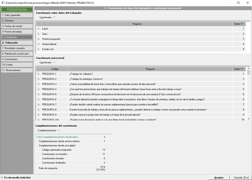 En el caso del método INSHT, encontrará dos cuestionarios, el 'Cuestionario sobre datos del trabajador' y el 'Cuestionario psicosocial', por lo que también tendrá que añadir las preguntas del trabajador.