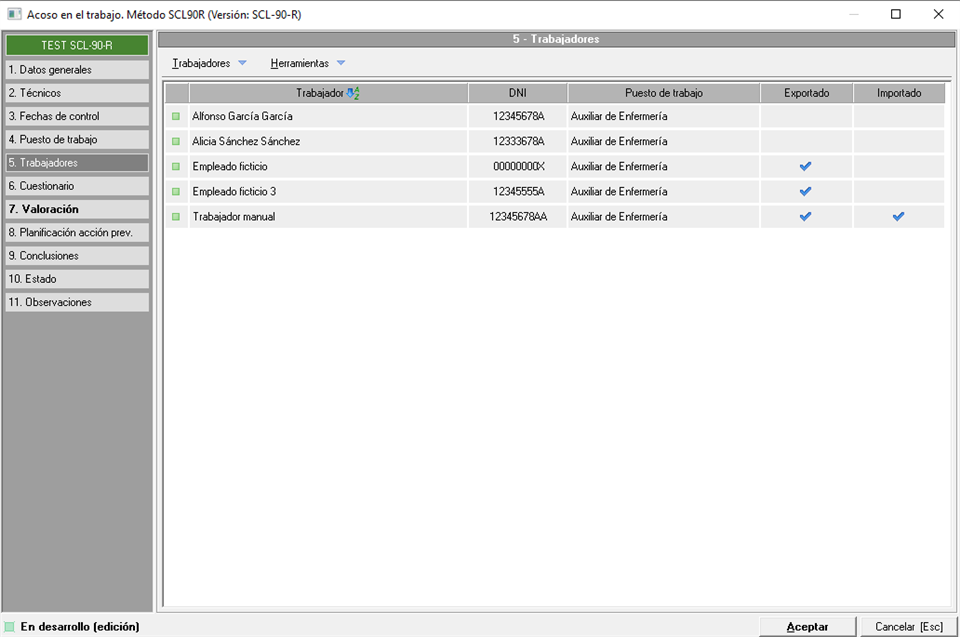 En el caso del método SCL-90-R, se tendrán que añadir los trabajadores que participan en el estudio, para lo que se necesita antes haber añadido al menos un puesto de trabajo para asignárselo.