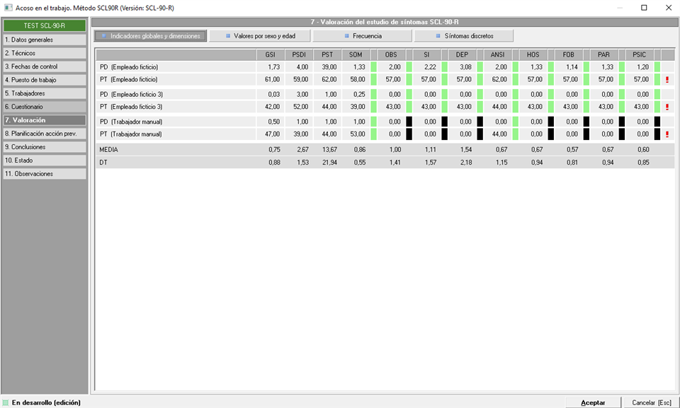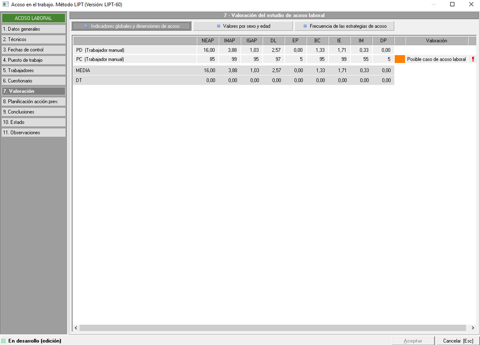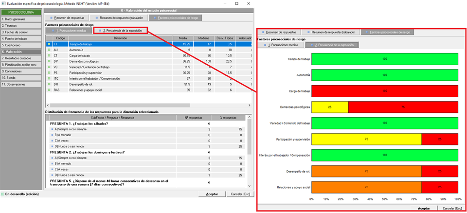 En cualquier caso, Prevengos nos mostrará automáticamente los resultados del estudio en el apartado 'Valoración', donde en función del método utilizado, se ofrecerán unos resultados y otros.