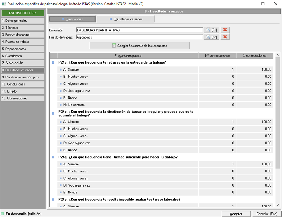 Si hay preguntas en las que el trabajador deba indicar el puesto que ocupa, las opciones de respuesta serán los puestos añadidos a este apartado.