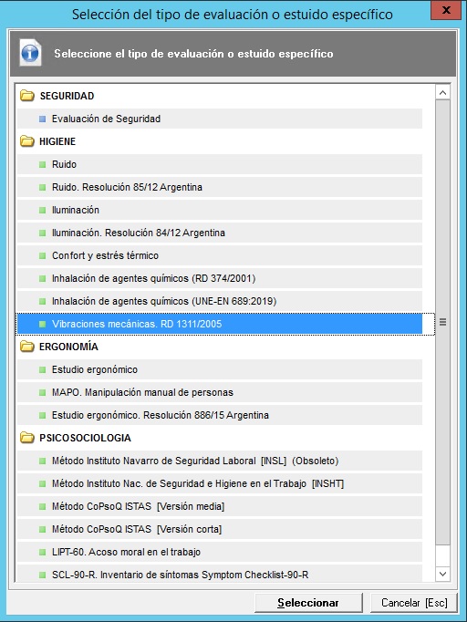 En Prevengos existe la posibilidad de que se realicen estudios específicos de vibraciones mecánicas por puestos de trabajo aplicando el Real Decreto 1311/2005, en los cuales el usuario añadirá la información de las mediciones que realiza sobre los puestos que está evaluando, y en base a esas mediciones el programa calculará el nivel de exposición a vibraciones que hay en esos puestos de trabajo.