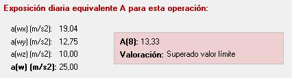 Una vez cumplimentados los datos de las mediciones y grabada la operación de exposicón a vibraciones que están evaluando, al volver a la pantalla de 'Operaciones' en la parte inferior aparecerá la valoración. Esta valoración será la valoración global de todas las operaciones de exposición a vibraciones evaluadas.