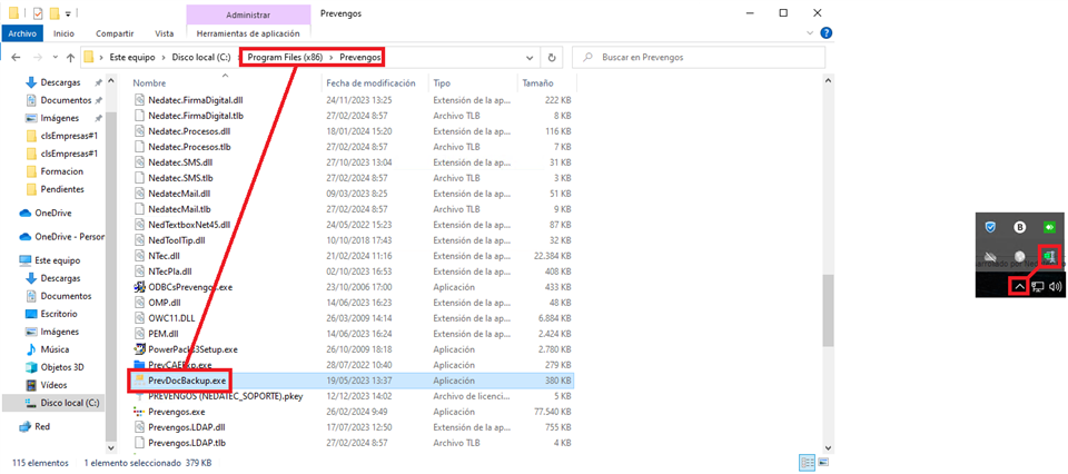 Si la copia va a tardar tiempo en procesarse, puede minimizar la aplicación para que se siga procesando el trabajo. Eso sí, si hace esto deberá tener en cuenta que no se mantendrá en la barra de tareas de Windows, sino que tendrá que volver a abrirla desde los iconos ocultos de Windows o dirigiéndose directamente a la aplicación, que se encuentra por lo general en "...Program Files (x86)\Prevengos":