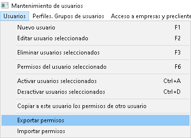 En el formulario que lista los usuarios del aplicativo, con el usuario correspondiente seleccionado, tiene que usar el menú Usuarios > Exportar permisos.