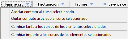 - Facturar elementos. Con esta opción podremos crear facturas de los cursos seleccionados.