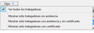 El último desplegable disponible nos permitirá filtrar los trabajadores mostrados del curso seleccionado. De tal manera, podemos ver todos los trabajadores, sólo los trabajadores sin asistencia, trabajadores con asistencia y sin certificado o aquellos trabajadores con certificado.