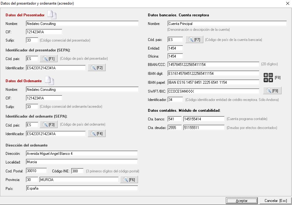 Por último, en la parte inferior indicaremos los datos contables configurados en el módulo de contabilidad