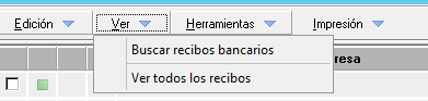 Desde el menú 'Ver' le permite buscar recibos o cambiar la visualización para ver todos los recibos