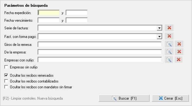 En el buscador de recibos bancarios puede ajustar la búsqueda de recibos: