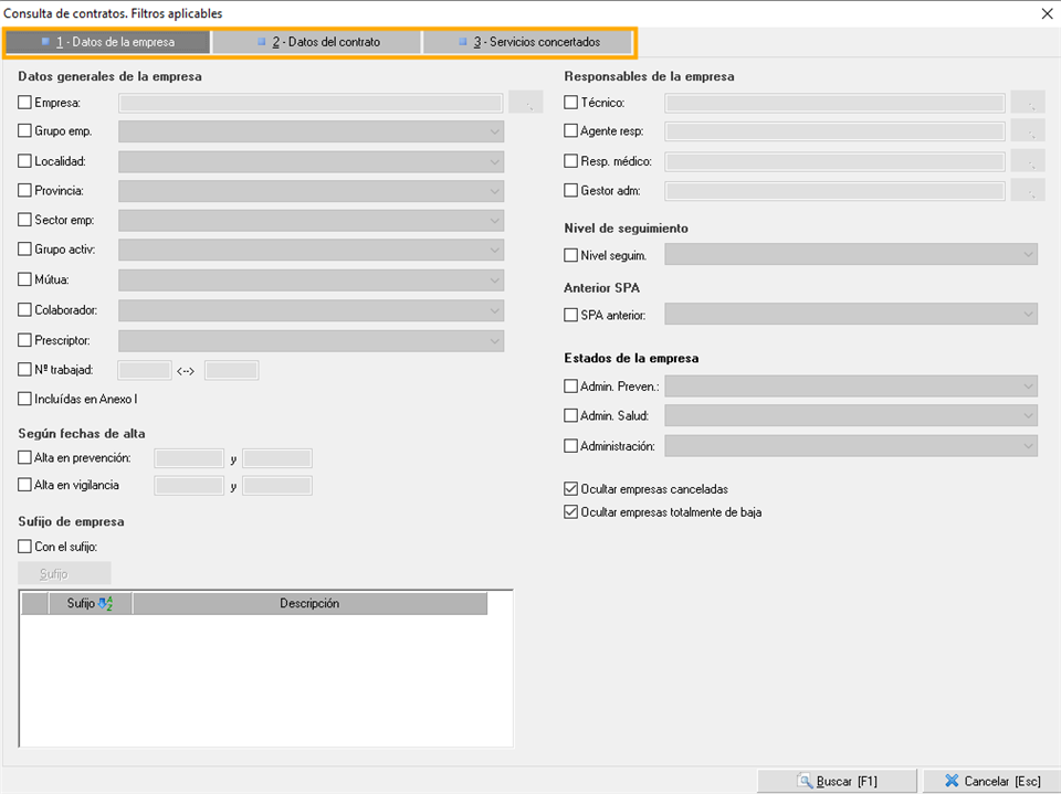 - Datos del contrato: En esta pestaña encontrarán filtros relacionados con los datos del contrato.