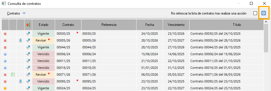 Al igual que la opción anterior, este marcado no modifica el contenido del contrato ni afecta a su gestión, sino que facilita el seguimiento y la organización del trabajo interno, permitiendo distinguir de forma rápida los contratos que ya han sido atendidos de los que aún están pendientes