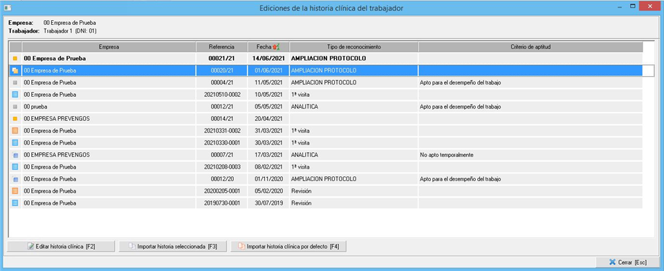 2. Historia clínica en vigor de un trabajador