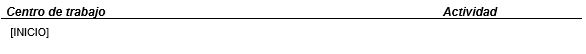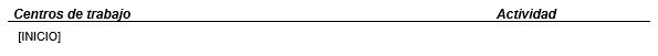 Subplantilla utilizada para insertar el listado de centros de trabajo de la empresa, estén o no incluidos en el contrato. Esta subplantilla debe incluir un único marcador [INICIO] situado en la primera columna de una tabla de 2 columnas, teniendo el siguiente diseño: