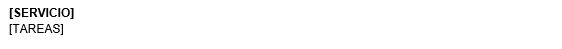 Subplantilla utilizada para mostrar el listado de servicios y tareas del contrato. Esta subplantilla debe contener un marcador [SERVICIO] para insertar el título del servicio y otro [TAREAS] situado en la primera celda de una tabla de 1 columna, teniendo el siguiente diseño: