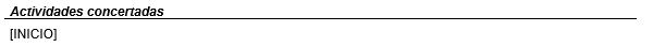Subplantilla para mostrar el resumen de las tareas incluidas en el contrato. Esta subplantilla debe incluir un marcador [INICIO] situado en la primera celda de una tabla de 2 columnas, teniendo el siguiente diseño: