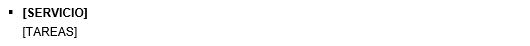 Subplantilla utilizada para mostrar el listado de servicios del contrato sin detallar las tareas. Esta subplantilla debe contener un marcador [SERVICIOS] situado en la primera celda de una tabla de 1 columna, teniendo el siguiente diseño: