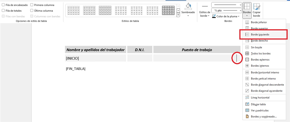 En este punto, vamos a comentar un caso concreto bastante frecuente, en el cuál encontramos una limitación del programa a la hora de modificar una subplantilla, pero que podemos solventar utilizando algunas herramientas de Word. El caso del que hablamos es la edición de tablas que insertan listados, por ejemplo, un listado de trabajadores.