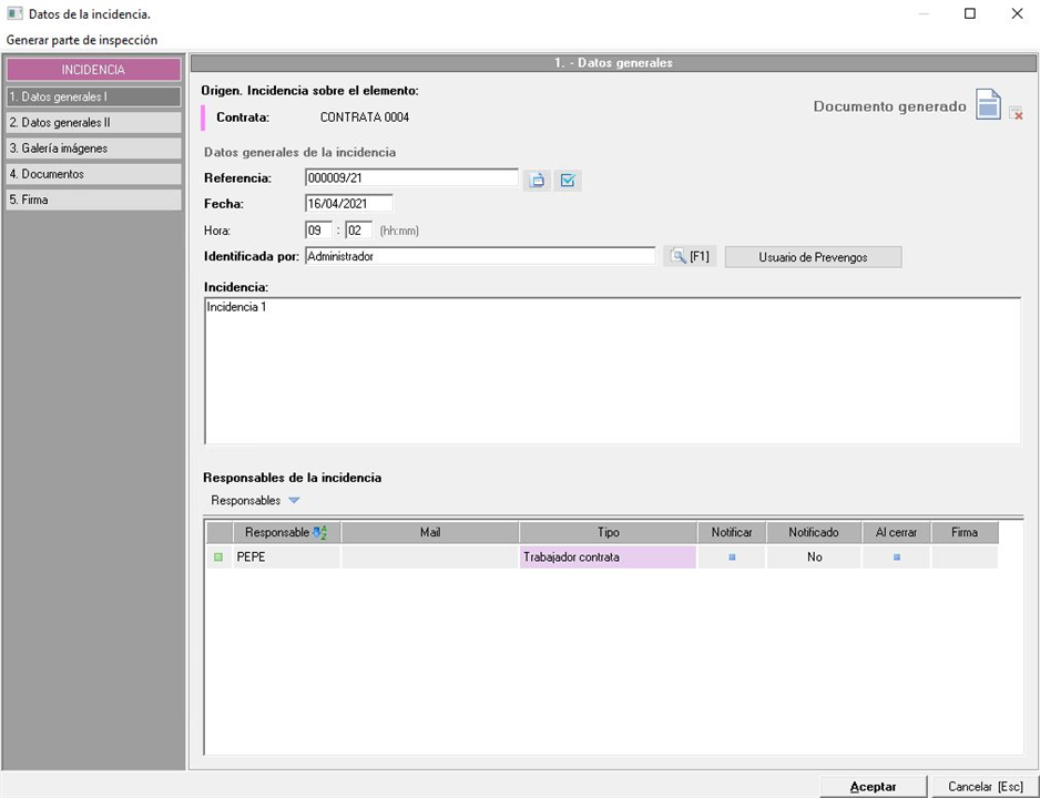 4.1 Generar documento de la incidencia