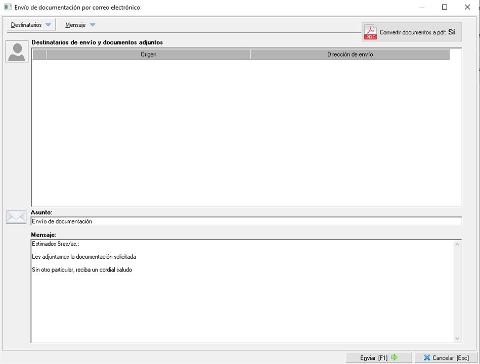 En éste podrá editar los destinatarios por defecto, añadir más destinatarios, configurar la conversión a PDF del documento Word, editar el mensaje...