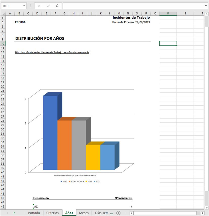 En esta pestaña aplicaremos filtros relacionados con el tipo de trabajo o las causas del incidente con el fin de obtener un estadístico más exhausto. La pantalla que se muestra es similar a la siguiente imagen: