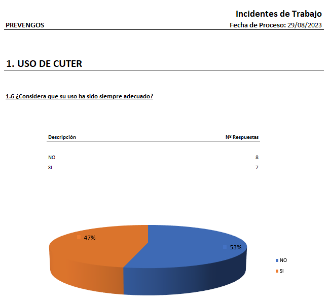 Si se han incluído un cuestionario en distintos incidentes y es invariable, se podrá obtener un informe estadístico de ellos, filtrados según las respuestas del cuestionario.
