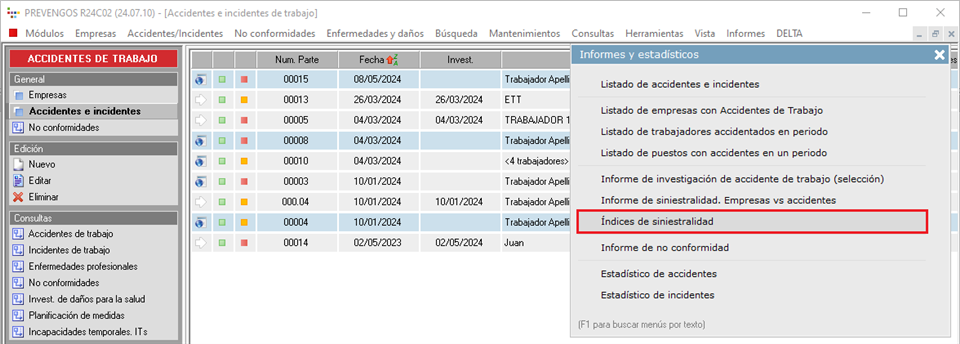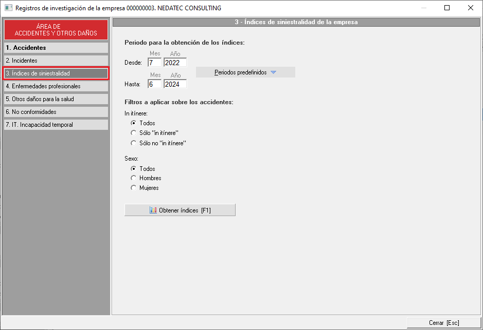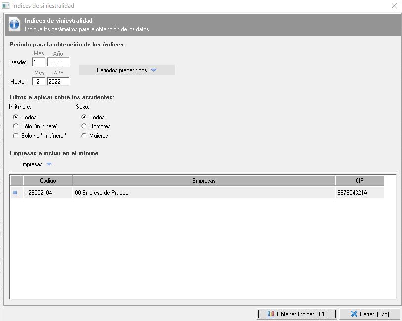 En el siguiente apartado veremos como configurar y generar los índices de siniestralidad.