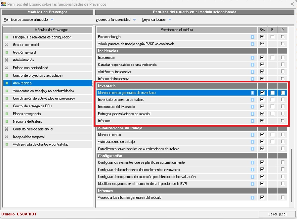 En este manual vamos a ver los diferentes permisos que existen en Prevengos que afectan inventario de maquinaria.