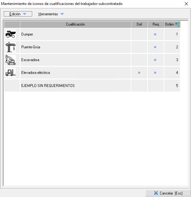 Dentro del listado, a parte de la imagen y el nombre de la propia cualificación encontramos la columna "Def" que nos indica aquellas marcadas por defecto y la columna "Req" nos indica que ésta cualificación tiene documentos requeridos. Estas opciones la veremos a continuación cuando veamos la ficha de una cualificación.