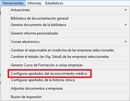 2.13 Configuración general de los apartados del reconocimiento médico