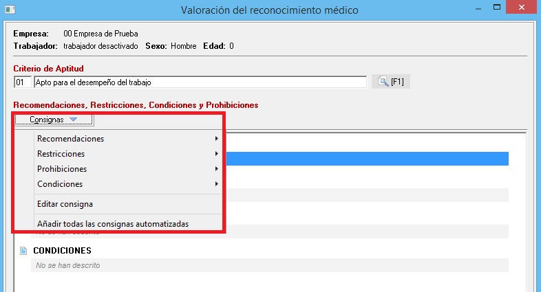 2.15 Configuración de los apartados del reconoicimiento médico de un trabajdor
