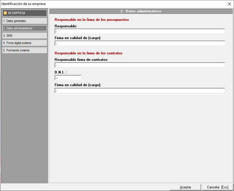 En caso de no disponer del módulo de Administración o ser un servicio de prevención propio, pueden poner un '-' en estos campos.