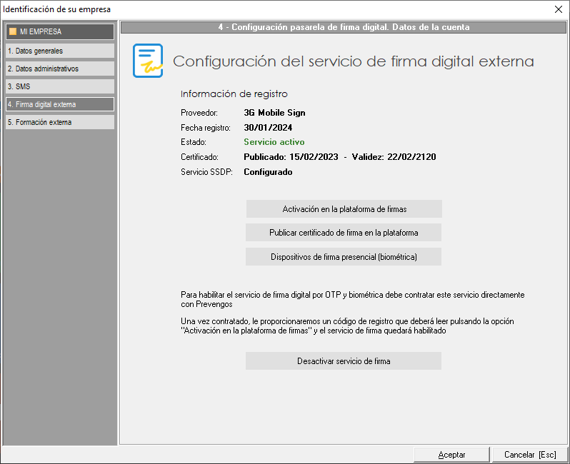 La configuración de esta pestaña se explica en la guía Firma digital externa.