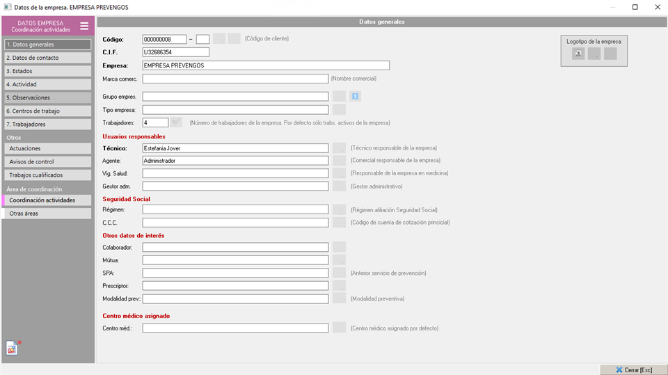 Al hacer doble clic sobre una empresa, se abre la ficha de la empresa. Según lo que tengamos configurado en el menú 'Empresas' se abrirá la empresa a nivel general o la empresa en coordinación.