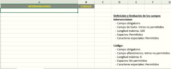 En esta imagen podemos ver que desde el menú desplegable de herramientas podemos obtener la siguiente plantilla de excel para la importación de las intervenciones quirúrgicas al mantenimiento.