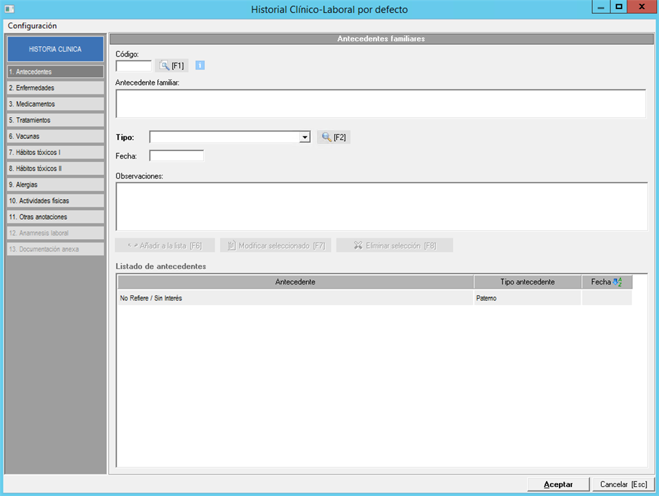 12. Historia Clínico Laboral por defecto.