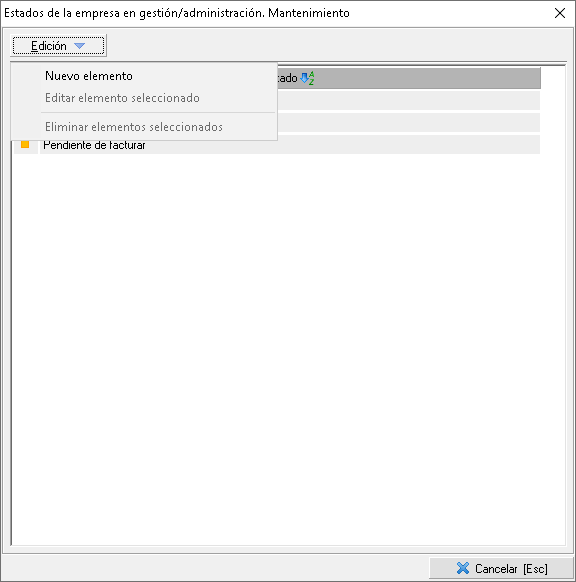 Mantenimiento de estados de la empresa